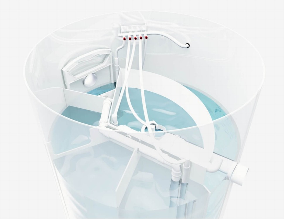 Domovní ČOV Aquatec jsou konstruovány jako válcové nádrže z polypropylenu, v nichž je instalována kompletní technologická vestavba pro čištění odpadních vod. Nádrže jsou samonosné a osazují se do připraveného výkopu na vodorovnou betonovou základovou desku. Následně se obsypou pískem, štěrkem nebo tříděnou zeminou. V případě výskytu vysoké hladiny spodní vody v místě instalace je nutné nádrž ČOV obetonovat v souladu se stavebními předpisy. Součástí dodávky každé domovní čistírny odpadních vod Aquatec AT je spolehlivé membránové dmychadlo SECOH, uzamykatelné víko, základní nástavec ZN.
